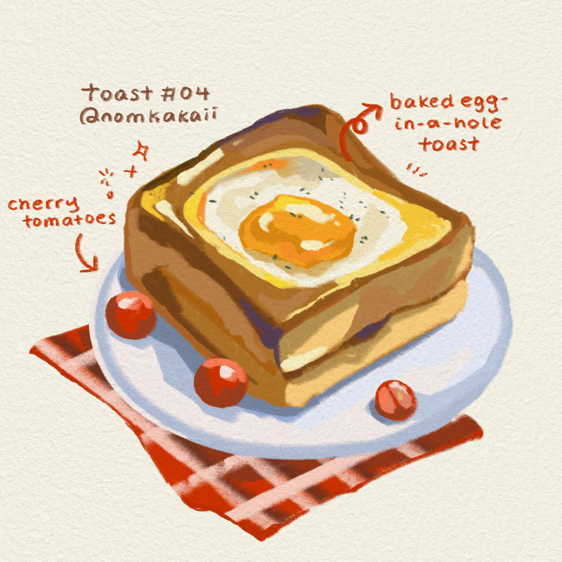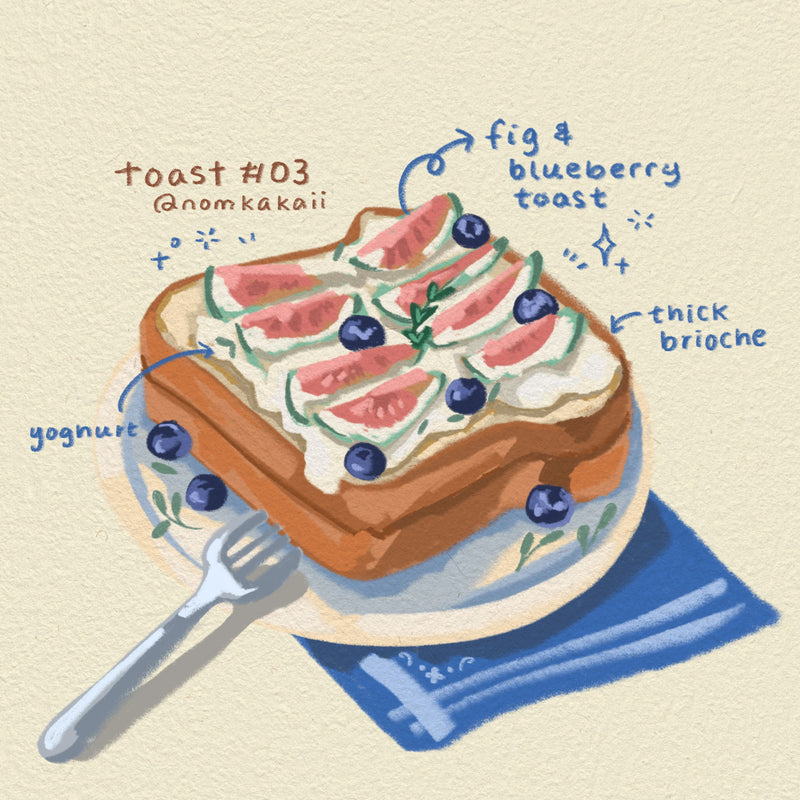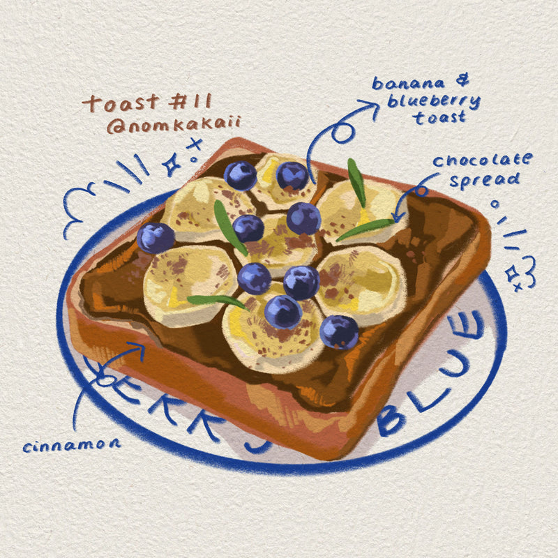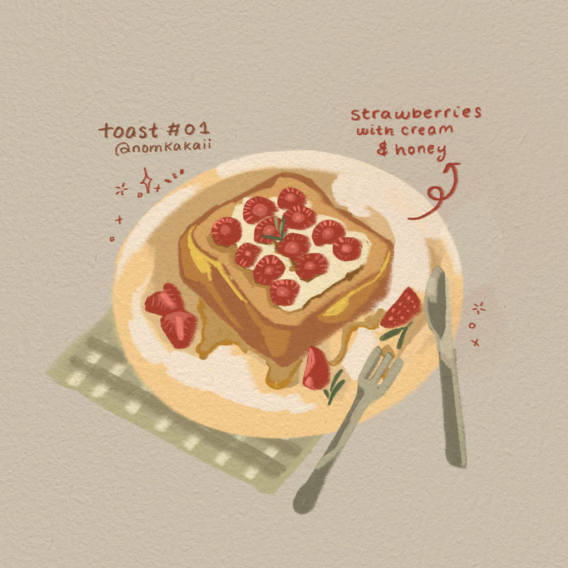 Toast is an ongoing illustration series that elevates the everyday ritual of toast into a quiet celebration of comfort, memory and care. Through an expanding collection of imagined toppings and compositions, the series transforms a humble, familiar food into a canvas for emotion, playfulness and reflection.